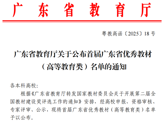 2025近日,广东省教育厅完成了首届广东省优秀教材(高等教育类)的评选工作,公示期已顺利结束,正式名单尘埃落定。广州太阳成集团tyc122cc入口在此次评选中表现卓越,两部教材成功入选,这无疑是学校教育教学工作的重大成果,彰显了我校在教材建设领域的深厚底蕴与强劲实力。入选的教材之一《中级财务会计》由会计学院的杨旻教授带领教学团队精心编写,教材以“技术赋能、思政浸润”为改革支柱,突破传统知识灌输模式。技术层面融入线上动态案例...