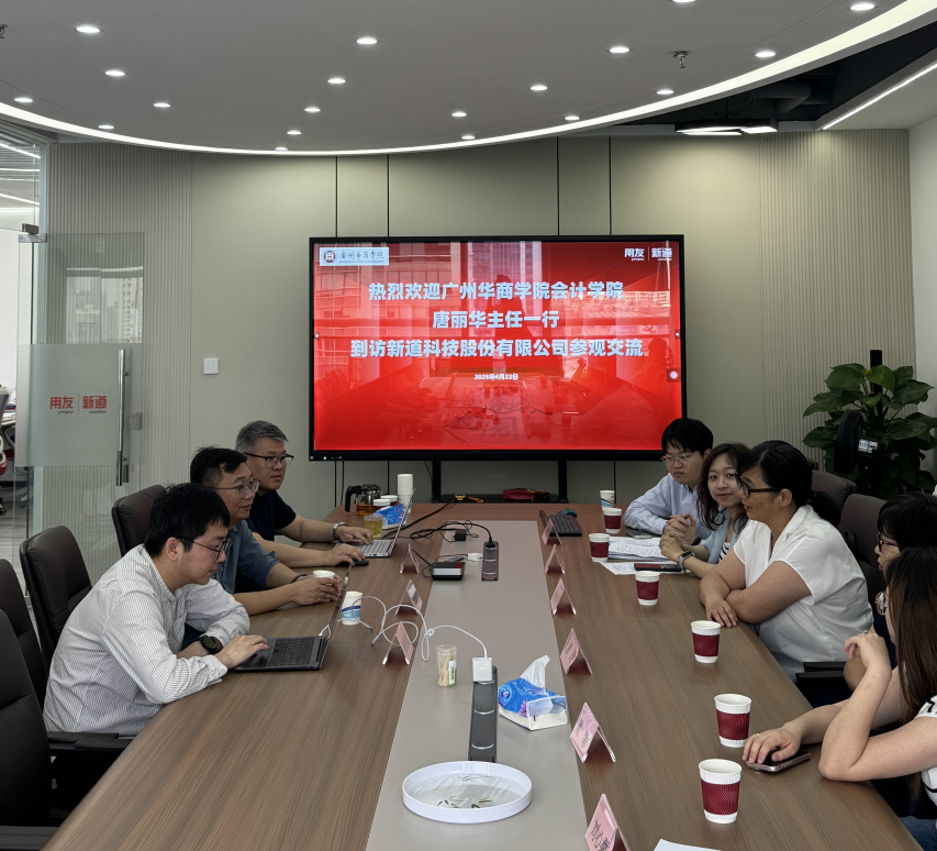 2025年4月22日,广州太阳成集团tyc122cc入口会计学院会计系主任唐丽华率师生代表,赴新道科技股份有限公司开展访企拓岗及校外实习基地调研。用友新道华南区总经理黄梓伟、教育规划总监魏闯携团队热情接待。双方围绕人才培养、实习就业合作、校外实习基地建设等关键议题展开深入交流,为深化校企合作、提升人才培养质量迈出重要一步。