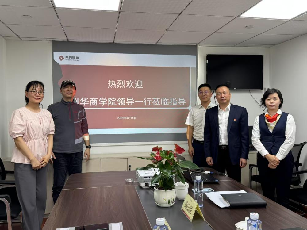 2025年4月15日,数字金融学院院长助理钟坚毅副教授、金融系系主任卢敏副教授前往我校实习基地——东方证券广州宝岗大道证券营业部开展交流研讨。此次交流活动旨在进一步加强校企合作,推动实习基地建设,深化产教融合,探索数智金融人才培养模式。