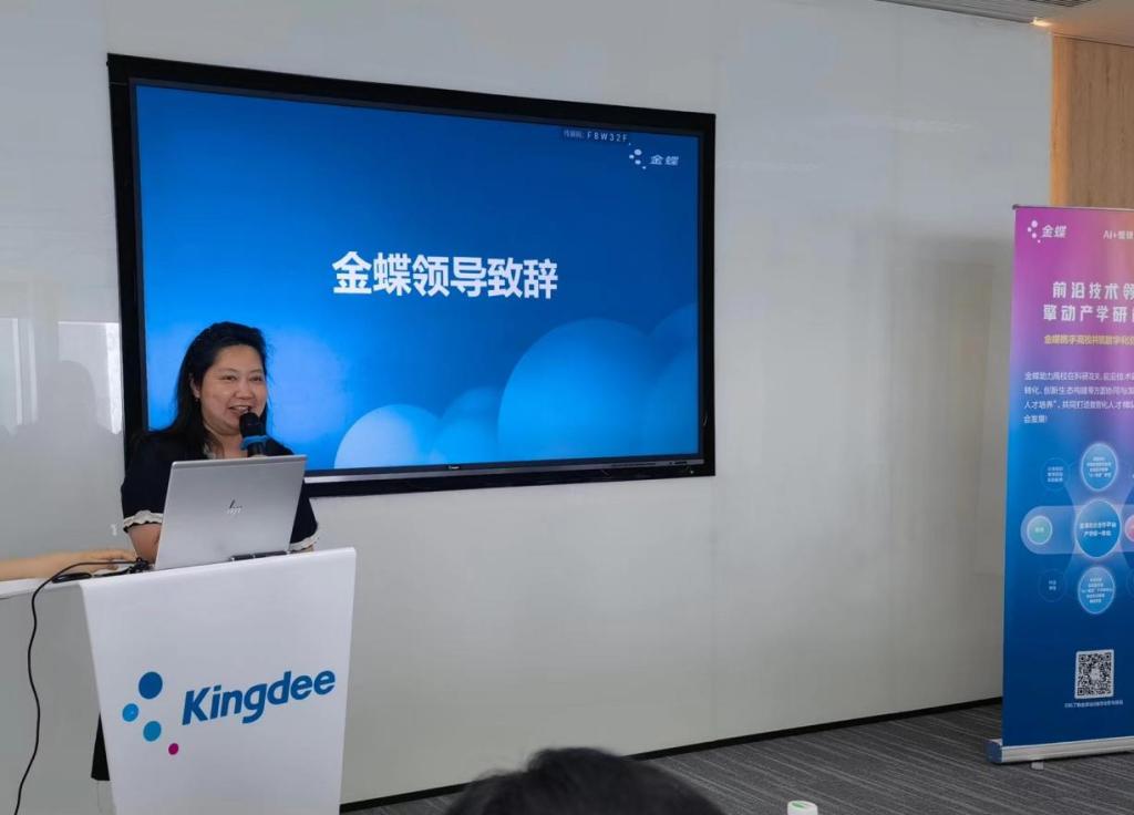 交流会上,陈平院助介绍了会计学院的产教融合实践成果。他表示,会计学院通过与企业合作开发课程、共建实习基地等方式,将企业实际需求融入教学过程,提升学生的实践能力。金蝶作为学校的实习示范基地,多年来与学校在协同育人方面开展深入合作,为学生提供了诸多实习机会。