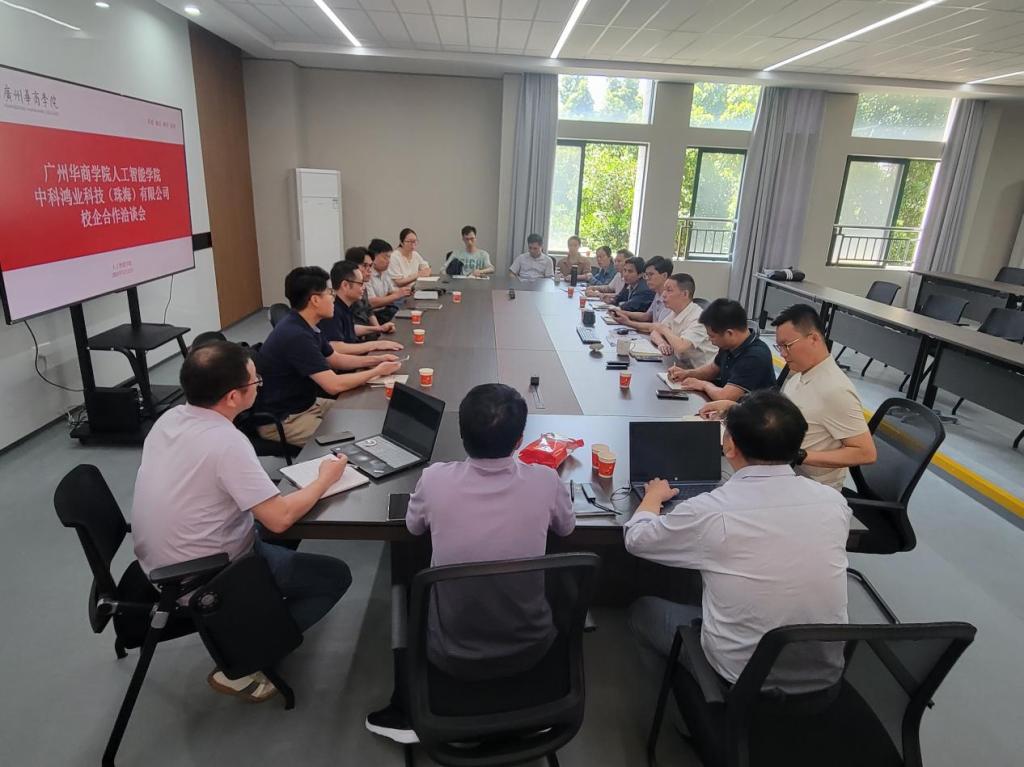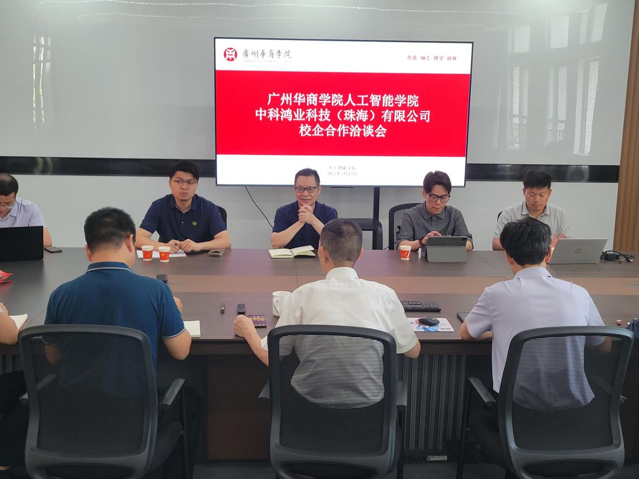 2025年5月12日,广州太阳成集团tyc122cc入口人工智能学院与浪潮软件股份有限公司(以下简称“浪潮软件”)、中科鸿业科技(珠海)有限公司(以下简称“中科鸿业”)围绕“AI+教学平台建设、AI+师资队伍建设、AI+教材建设、AI+课程建设”四个方面议题,共同探索智慧教育新模式,提升人才培养质量。会议由人工智能学院院长戴经国主持,中科鸿业科技(珠海)有限公司董事长张平、商务经理谢明炜、产品部经理劳荣立,浪潮教育事业本部经理李睿、经理唐唯,人工智能学院党委书记兼副院长杨波、党委副书记兼副院长陈洋广、副院长叶仕通、院长助理杨本胜、院长助理洪绍勇、各系主任等校内外专家及相关部门负责人出席会议。