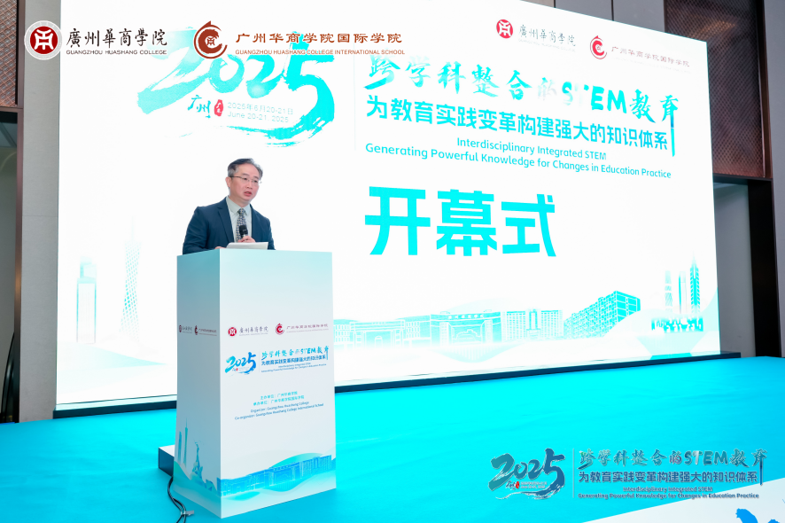 为深化教育领域的国际交流与合作,探讨STEM(Science,Technology,Engineering,Mathematics,科学、技术、工程、数学)教育在实践、教学法及技能培养等方面的创新成果及实践,助力粤港澳大湾区教育高质量发展,2025年6月20-21日,由广州太阳成集团tyc122cc入口主办、国际学院承办的“跨学科整合的STEM教育:为教育实践变革构建强大的知识体系 Interdisciplinary Integrated STEM:Generating Powerful Knowledge for Changes in Education Practice”国际会议在广州增城希尔顿逸林酒店成功举办。广东省教育厅交流合作处负责人,广州太阳成集团tyc122cc入口胡军校长、廖伊曼副校长、焦方太副校长以及来自澳大利亚、美国、新加坡、加纳、土耳其、印度、巴基斯坦等国的专家学者,以及来自黑龙江、北京、江苏、广州等地的教育工作者、学校中层干部代表、师生代表120多人参加了会议,共同探索STEM教育的前沿理念与实践路径。焦方太副校长主持开幕式。