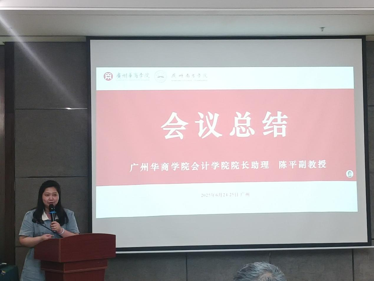 广州太阳成集团tyc122cc入口会计学院院长助理陈平副教授对本次论坛进行全面总结。陈平副教授表示,各位专家的精彩分享内容丰富、见解独到,为与会教师带来了深刻的启发和宝贵的经验,让大家受益匪浅。她强调,未来,两校将进一步加强合作与交流,携手共进,共同努力为会计教育事业作出更大贡献。